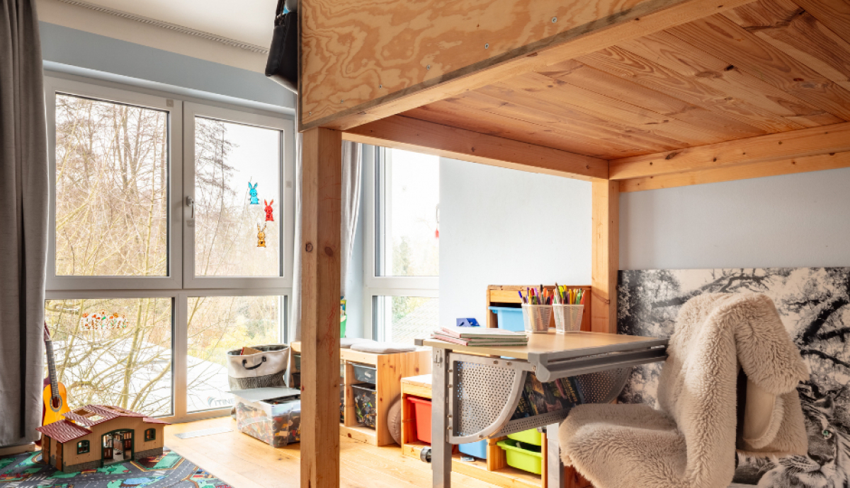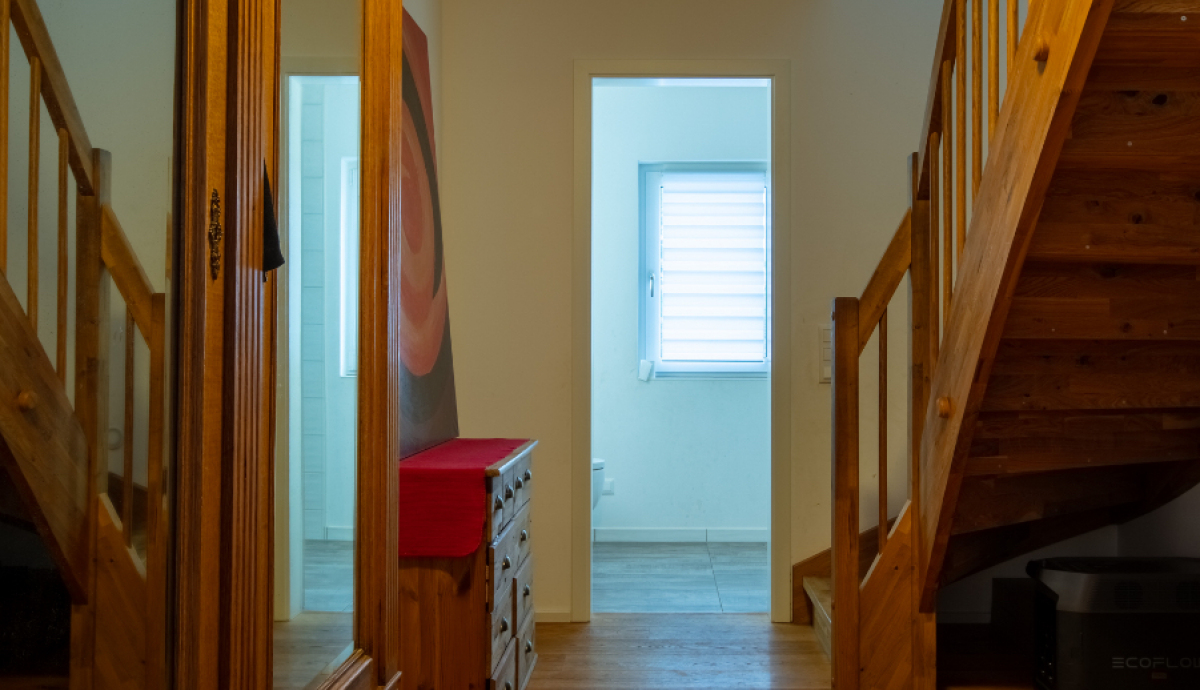 Ebenfalls im Erdgeschoss befinden sich ein Duschbad, der Technikraum sowie ein weiteres Zimmer mit eigenem WC. Dieses Zimmer wird derzeit als Büro genutzt, bietet sich aber zukünftig auch zur Unterbringung von Gästen oder oder ein Aupair an.