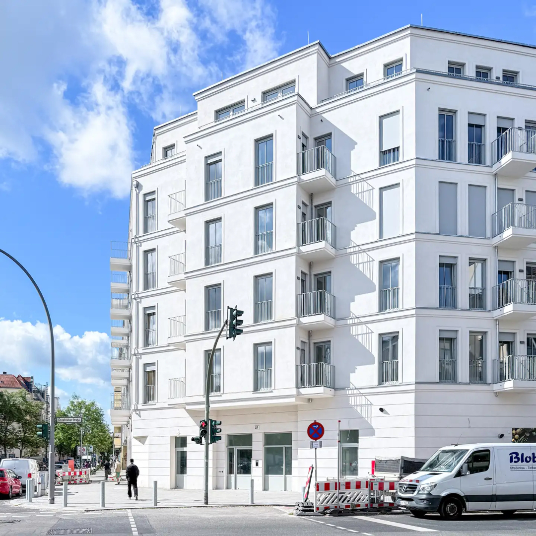 Das Neubauprojekt in Berlin-Charlottenburg vereint modernes Design, hochwertige Bauqualität und energieeffiziente Technik. Das Gebäude umfasst insgesamt 47 Wohneinheiten mit 1 bis 3 Zimmern sowie einen EDEKA-Supermarkt im Erdgeschoss.